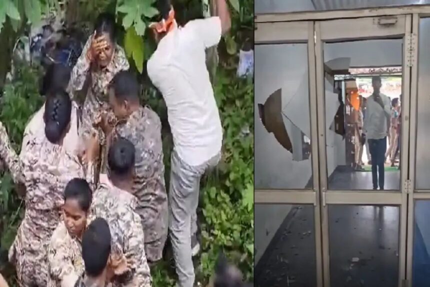 रायपुरः Chahttisgarh News: छत्तीसगढ़ के वन मंत्री केदार कश्यप द्वारा कर्मचारी के साथ कथित मारपीट को लेकर प्रदेश में सियासत गरमा गई है। अब इस मामले को लेकर कांग्रेस ने मोर्चा खोल दिया है। कांग्रेस ने रायपुर में मंत्री केदार कश्यप के बंगले का घेराव किया। बंगला घेरने रोकने निकले कार्यकर्ताओं को पुलिस ने रास्ते में ही रोक दिया। इस दौरान पुलिस से उनकी झूमाझटकी भी हुई। कांग्रेस कार्यकर्ताओं ने अचानक पथराव कर दिया। इस दौरान एक महिला पुलिसकर्मियों के सिर पर चोंट आई है।